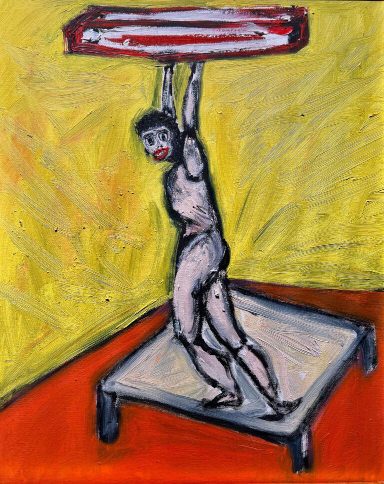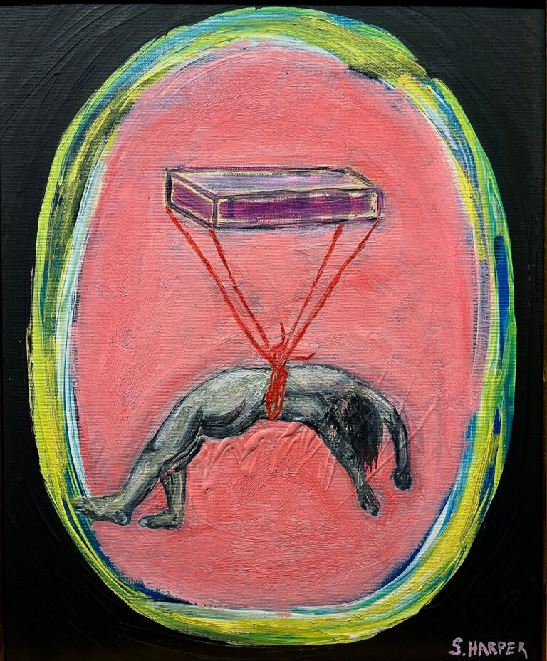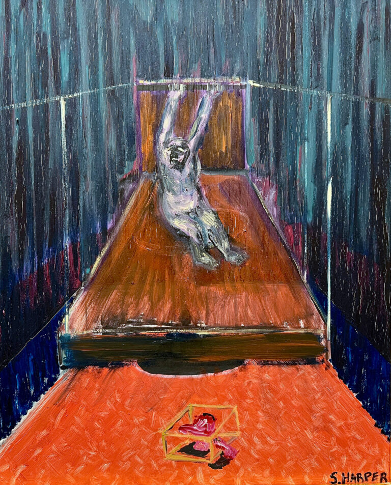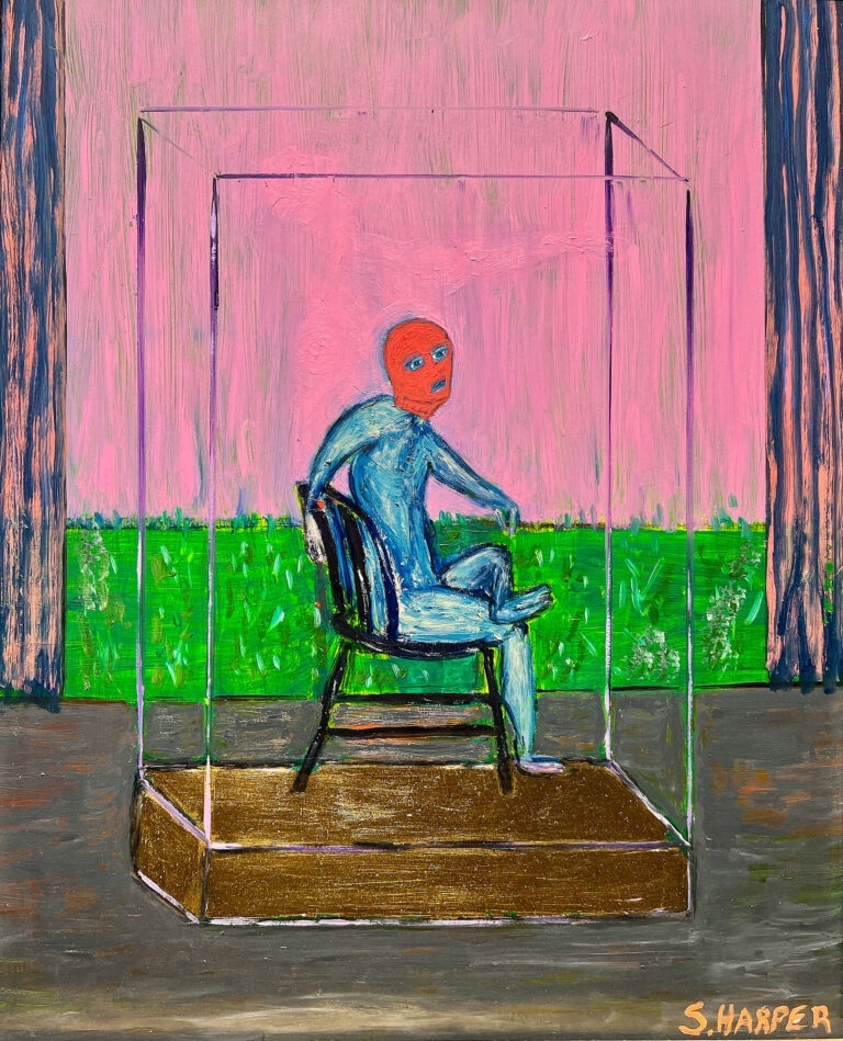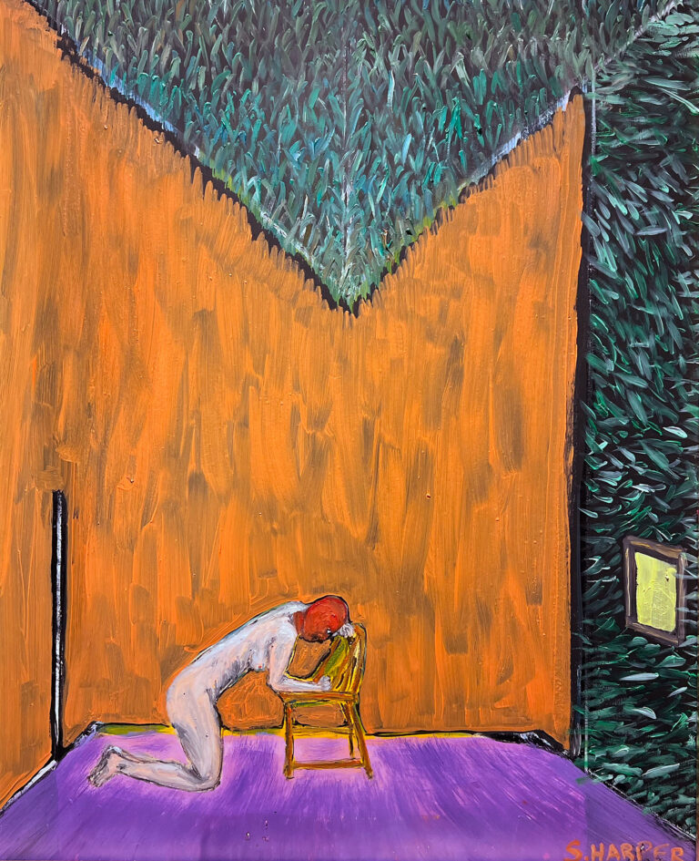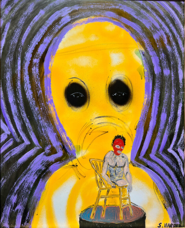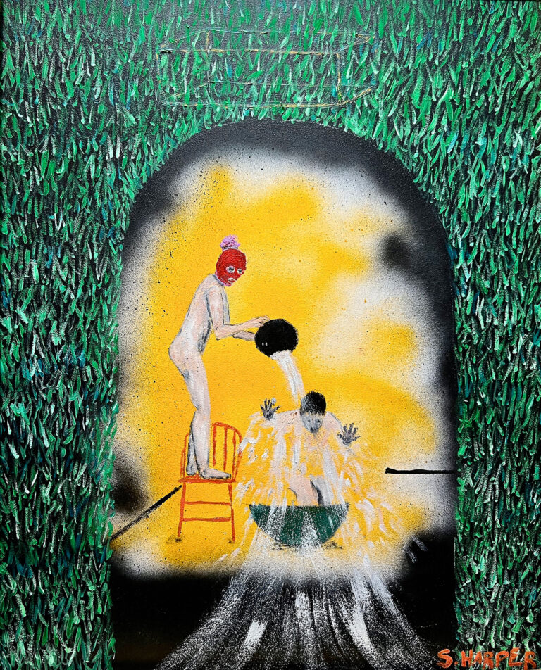 Harper spent his youth in Guatemala surrounded and inspired by vibrant colors and intricate textiles. Painting in a style which straddles representation and abstraction, he references the expressionistic lines and bold colors of street art. Utilizing oil, enamel, acrylic and spray paint, he creates large-scale works that maintain the feeling of drawings in a fast-paced practice that could be compared to automatism.